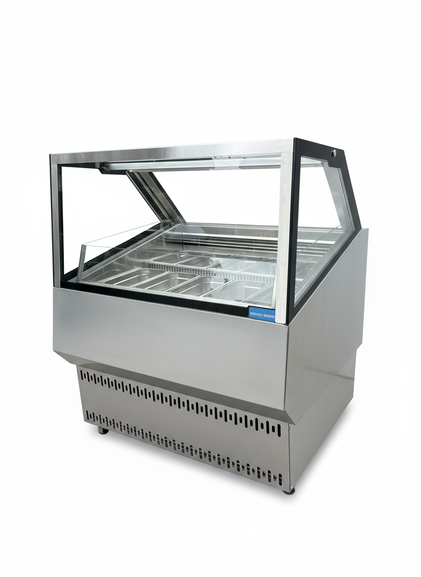 El vidrio con tecnología antiempañamiento ofrece una visibilidad impecable incluso en horas de alta demanda, mientras la estructura en acero inoxidable 304 aporta resistencia profesional y un acabado elegante.